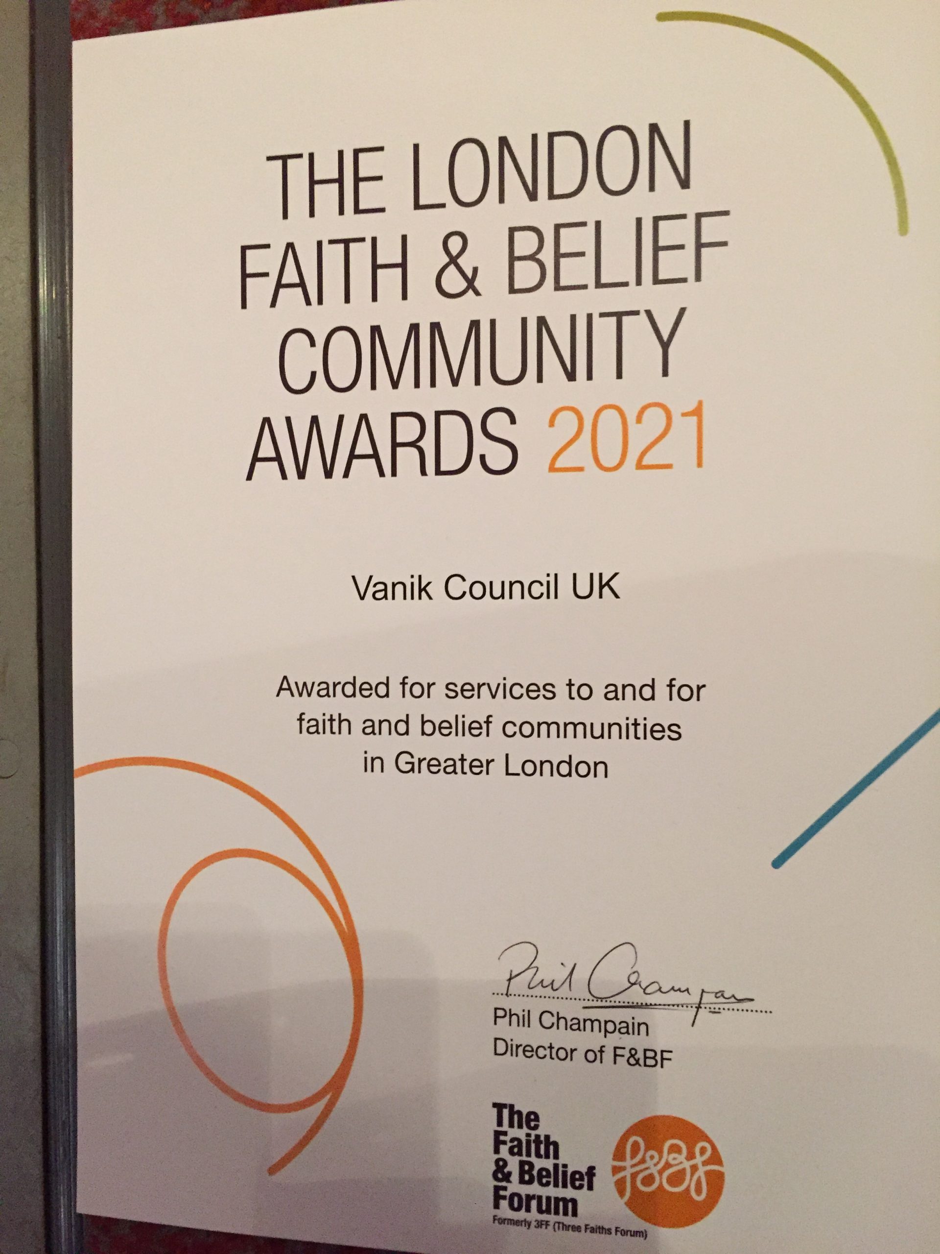 Vanik Council UK was selected for the 2021 London Faith and Belief Community Award for its ‘Health and Wellbeing’ service to the community in Greater London.